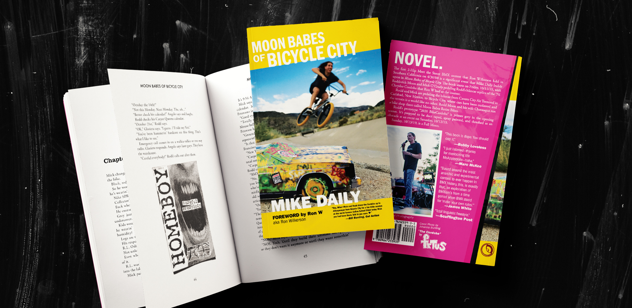 A modern day monument to BMX Freestyle culture and innovative fiction, Moon Babes of Bicycle City is the latest novel from author, journalist, zinemaker, and co-founder of the Plywood Hoods Freestyle BMX Trick Team, Mike Daily.